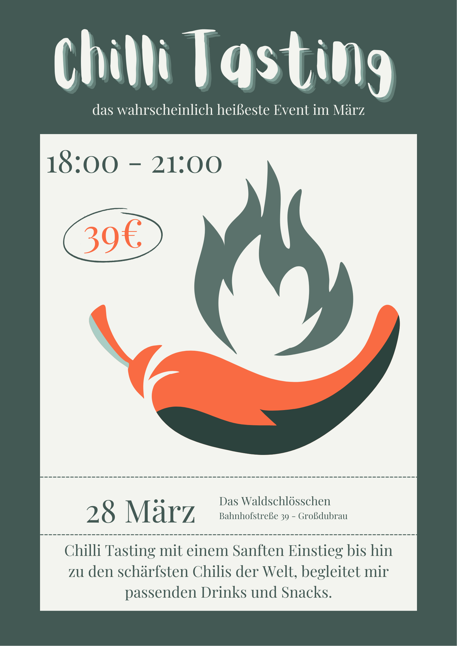 Ein Abend für alle, die es aromatisch und würzig mögen. Beim Chili & Fire Tasting verkosten wir verschiedene Chili-Variationen – von mild-fruchtig bis intensiv-scharf – begleitet von passenden Beilagen und ausgewählten Getränken. Ein genussvoller Abend mit Charakter, Wärme und überraschenden Aromen.